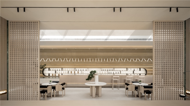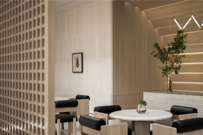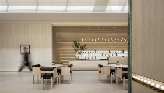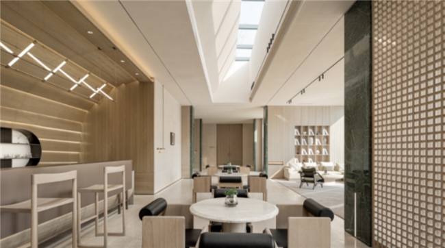 盎然生机与都市人文相遇,精雕细琢的水吧区随即而出。延续了一贯的设计手法,干练的线条与规整的廓形构成微妙平衡。