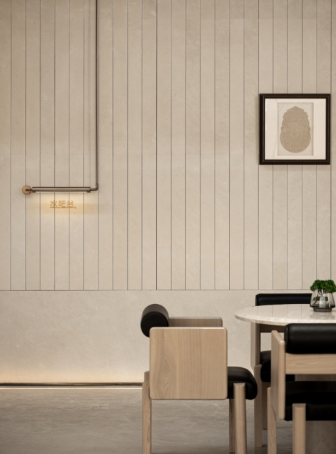 空间立面以精致的细节和丰富的层次,塑造视觉的聚焦点与内部质感的饱满度:运用灯光的渲染形成有趣的肌理层面;木栅栏隔断的变化,也赋予多元的表情。在质朴中呈现精致质感与氛围。