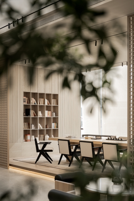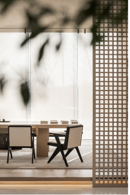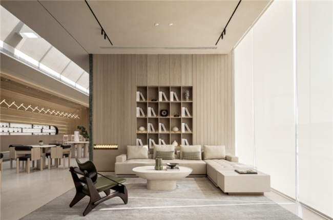 洽谈区流畅的互动,这种个人属性与品质之间的微妙平衡,“器物”和“空间”真正交互起来就能在其安静的姿态中感受它的温度。