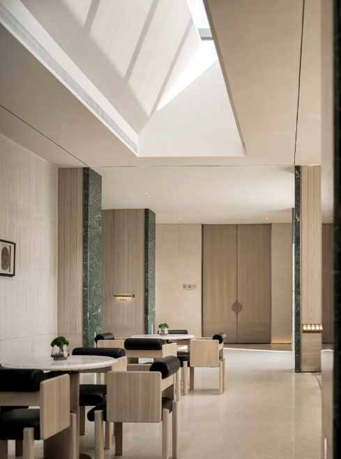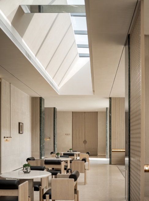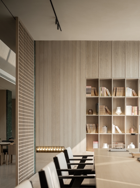 休闲区与洽谈区是商谈区域中的另一条情感脉络,模糊了区域的界限,沉静的光束,折射、蔓延......